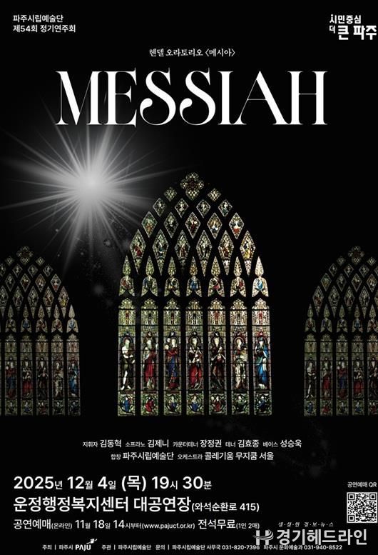 [경기헤드라인=김홍량 기자] 파주시는 오는 12월 4일 19시 30분, 운정행복센터 대공연장에서 시립예술단 제54회 정기연주회 ‘헨델 오라토리오 '메시아'’를 선보인다고 밝혔다.