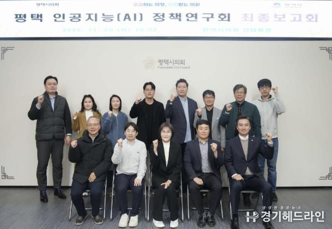 [경기헤드라인=문수철 기자] 평택시의회 연구 단체인‘평택 인공지능(AI) 정책연구회’는 20일 시의회 간담회장에서 연구 용역 최종보고회를 개최하고, 평택시의 AI 기반 미래 도시 전략 마련을 위한 연구 활동을 성공적으로 마무리했다.