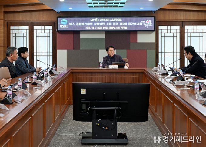 [경기헤드라인=문수철 기자] 의정부시는 11월 21일 시청 직곡홀에서 ‘버스 종합개선대책 실행방안 수립 용역’ 중간보고회를 열고, 최근 분석 결과와 개편 방향을 공유했다.
