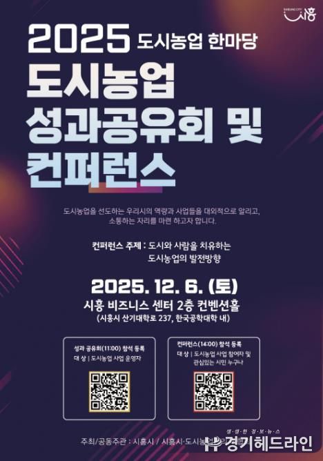 [경기헤드라인=문수철 기자] 시흥시는 오는 12월 6일 한국공학대학교 내 시흥비즈니스센터 컨벤션홀에서 ‘2025년 도시농업 한마당 성과공유회 및 콘퍼런스’를 개최한다. 이번 행사는 한 해 동안 추진한 도시농업 정책과 활동을 시민과 공유하고, 도시농업이 나아가야 할 미래 발전 방향을 전문가들과 함께 논의하기 위해 마련됐다.