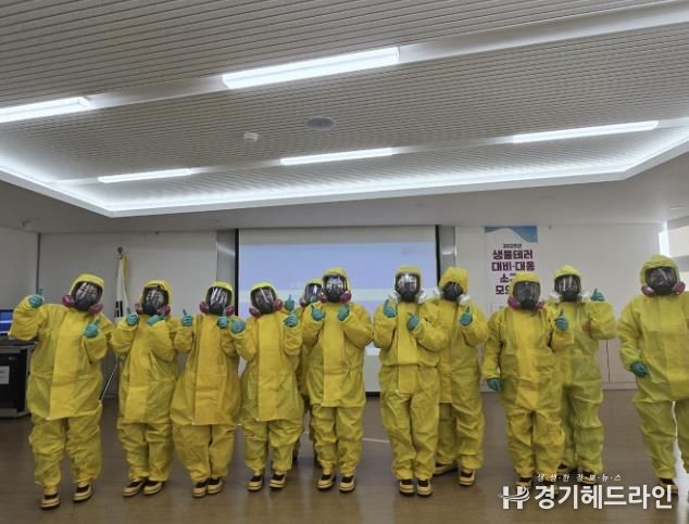 특히, 이번 훈련에서는 원시119 안전센터의 지원 아래 Level A 개인보호구 착·탈의 실습이 이뤄졌으며, 고위험 상황에서 초동대응요원의 안전 확보 절차를 전문적으로 교육했다.