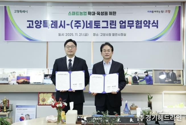 [경기헤드라인=김홍량 기자] 고양특례시는 지난 21일(금) ㈜네토그린과 ‘스마트농업 확대·육성을 위한 업무협약(MOU)’을 체결했다고 밝혔다.