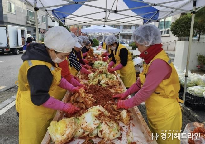 [경기헤드라인=문수철 기자] 수원 징검다리봉사단은 지난 23일 수원시 장안구 정자2동 행정복지센터 주차장에서 사랑의 김장 담그기 행사를 진행했다.