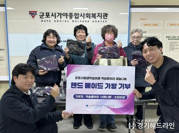 이번 기부에는 홈패션 및 의류 수선 분야에서 활동 중인 평생학습동아리 ‘너영나영’과 ‘소담손길’ 두 개 팀이 참여했다. 두 동아리는 수개월간의 정기 학습을 통해 익힌 기술을 바탕으로 실용성과 완성도를 갖춘 핸드메이드 가방 76점을 제작했으며, 기부식은 11월 24일 군포시가야종합사회복지관에서 진행됐다. 동아리 간 공동 프로젝트 추진을 통해 자연스럽게 협력 체계를 구축하고, 학습 공동체로서의 연대감을 강화하는 계기가 됐다는 점에서 의미가 크다.