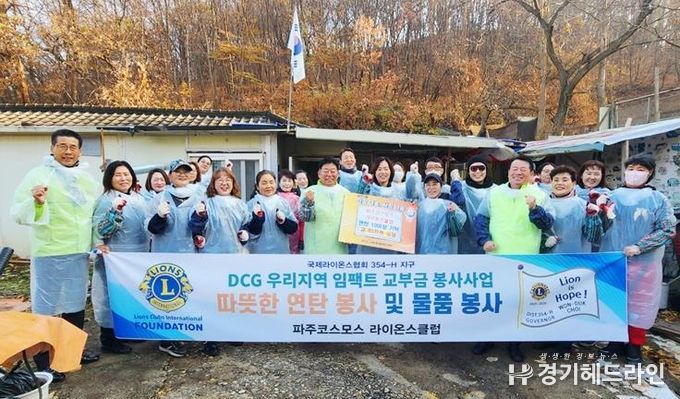 금촌1동과 복지 사각지대 지원을 위한 업무협약을 체결한 파주코스모스라이온스클럽은 매년 꾸준한 나눔과 봉사를 이어오고 있다. 작년 겨울 2,000장의 연탄을 기탁한 데 이어, 올해에도 지난 26일 연탄 1,000장을 기탁했으며, 연탄이 전달된 네 가정 중 한 곳을 직접 방문해 연탄을 나르며 봉사에 참여했다.