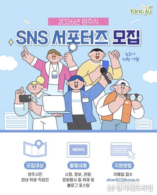 [경기헤드라인=김윤종 기자] 양주시가 시민과 소통하며 시정 소식과 지역의 숨은 매력을 널리 알릴 '2026년 양주시 SNS 서포터즈'를 오는 12월 1일부터 10일까지 10일간 모집한다.