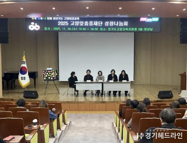 [경기헤드라인=김홍량 기자] 고양교육지원청이 11월 26일 개최한‘2025 고양맞춤중재단 성장나눔회’가 한 해의 성장을 서로 나누고, 내년의 새로운 변화를 기대하게 만드는 산뜻한 자리로 마무리됐다. 이번 행사에는 고양맞춤중재단, 마음공유 준비학교, 고양 관내 교원 등이 참여해 올해 운영된 관계성장프로그램을 되돌아보고, 2026년의 더 단단한 운영 방향을 함께 그렸다. 참석자들 사이에는 “올해 이런 일도 있었어?”라는 반응이 나올 만큼 서로의 경험을 나누는 대목마다 밝은 에너지와 진솔한 이야기들이 이어졌다.
