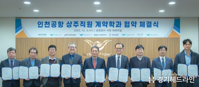 [경기헤드라인=문수철 기자] 인천국제공항공사는 공항청사 회의실에서 한국항공대학교(총장 허희영)와 공항 상주직원 교육 인프라 확대를 위한 ‘계약학과 개설・운영 협약’을 체결했다고 3일 밝혔다.