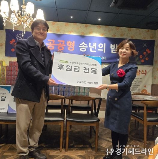 [경기헤드라인=문수철 기자] 부천시 공공형어린이집연합회가 지난 24일 개최된 공공형어린이집 송년의 밤 행사에서 춘의종합사회복지관에 이웃사랑 후원금을 전달하며 2년 연속 나눔 활동을 이어갔다.