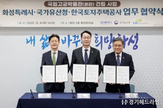 화성특례시는 4일 국가유산청, 한국토지주택공사와 ‘국립고궁박물관 분관 건립사업’의 성공적인 추진을 위한 업무협약을 체결하고 경기 남부권 문화 중심 도시로의 도약에 본격적인 행보를 시작했다.