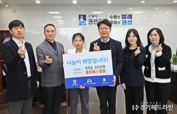 [경기헤드라인=문수철 기자] 권선구는 9일 제이에스병원(원장 최희준)에서 장학금 5백만 원을 후원했다고 밝혔다.