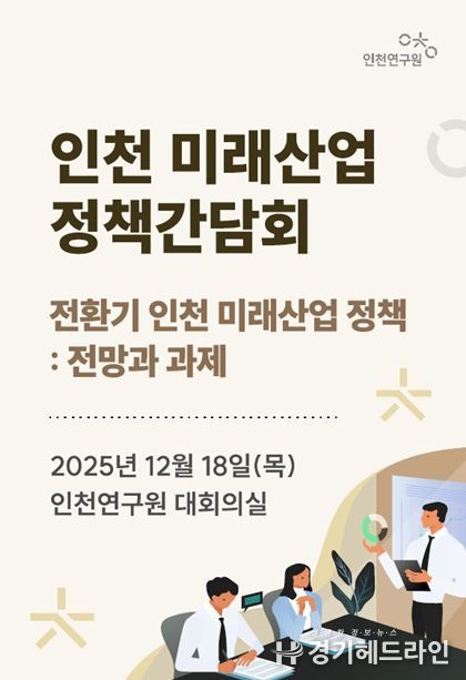 [경기헤드라인=문수철 기자] 인천연구원은 2025년 12월 18일 오전 10시, 인천연구원 대회의실에서 '인천 미래산업 정책간담회'를 개최한다.