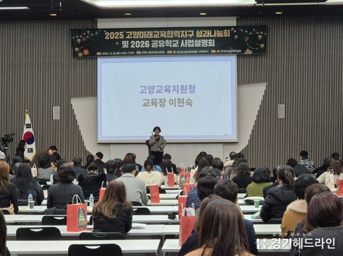 [경기헤드라인=김홍량 기자] 경기도고양교육지원청은 2025년 12월 23일 킨텍스 제2전시장(401~403호)에서‘2025 고양미래교육협력지구 성과나눔회 및 2026 공유학교 사업설명회’를 개최했다. 이날 행사에는 고양 관내 유·초·중·고 교사, 학교관리자, 학생, 협력 마을활동가 등 총 400여 명이 참석해 고양교육의 미래를 함께 모색했다.