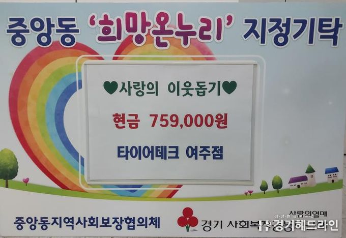 [경기헤드라인=정현수 기자] 타이어테크 여주점은 지난 23일 연말을 맞아 지역사회 취약계층을 돕기 위해 성금 75만9천원을 중앙동행정복지센터에 기탁했다.
