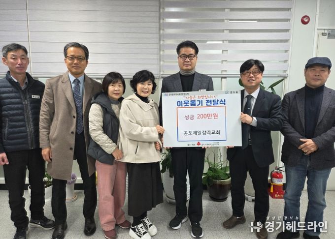 [경기헤드라인=문수철 기자] 공도제일감리교회는 12월 24일 지역사회의 어려운 이웃을 돕기 위해 공도읍에 기부금 200만원을 전달했다.
