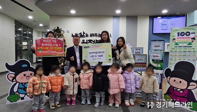 [경기헤드라인=문수철 기자] 의정부시 송산3동행정복지센터은 12월 23일 호반아이숲어린이집이 ‘100일간 사랑릴레이 배턴 잇기’에 참여해 라면, 휴지, 즉석밥 등 생필품을 전달했다고 밝혔다.
