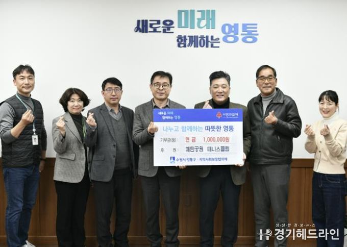 장수석 영통구청장은 “따뜻한 선행을 실천한 매탄공원 테니스클럽에 진심으로 감사드린다”며 “관내 어려운 주민들에게 큰 도움이 되고 지역사회가 따뜻하고 밝아질 것”이라고 말했다.