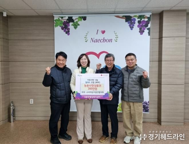 [경기헤드라인=김홍량 기자] 포천시 내촌면 행정복지센터는 지난 24일 소리개길기업인협의회가 농촌사랑상품권 200만 원 상당을 경기 사회복지공동모금회에 기탁하며 ‘이웃사랑 나눔 릴레이 48호’에 동참했다고 밝혔다.