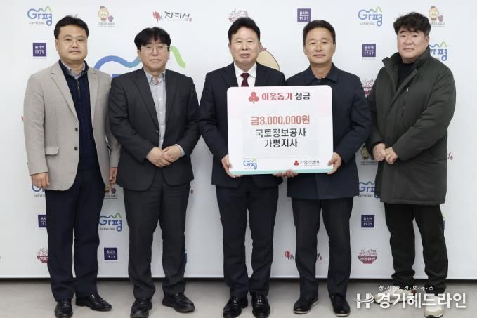 [경기헤드라인=문수철 기자] 한국국토정보공사 가평지사는 지난 24일 지역 내 어려운 이웃을 돕기 위한 성금 300만원을 가평군에 기탁했다.