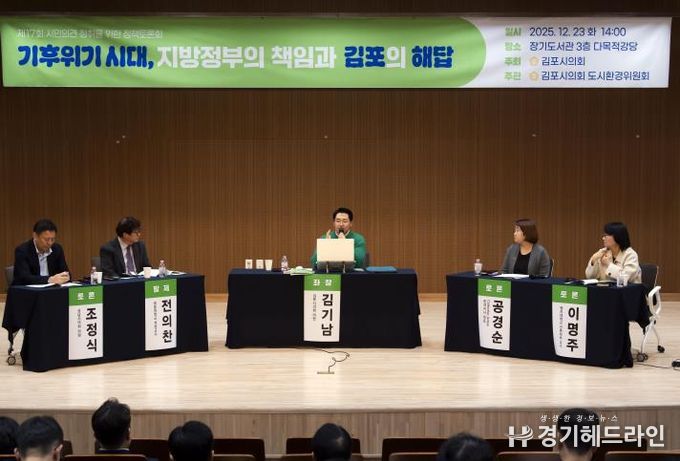 [경기헤드라인=문수철 기자] 김포시의회 도시환경위원회는 12월 23일 장기도서관에서 ‘기후위기 시대, 지방정부의 책임과 김포의 해답’을 주제로 제17회 정책토론회를 열었다.