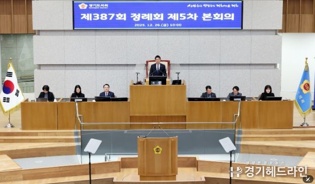 경기도의회는 이날 제387회 정례회 5차 본회의를 열고 2026년도 새해 예산안을 의결하며 회기 일정을 끝마쳤다.
