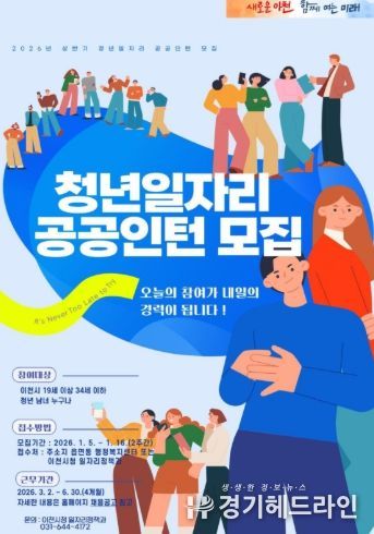 [경기헤드라인=정현수 기자] 이천시는 2026년 1월 5일부터 1월 16일까지 ‘청년일자리 공공인턴사업’의 상반기 참여자 47명을 모집한다.
