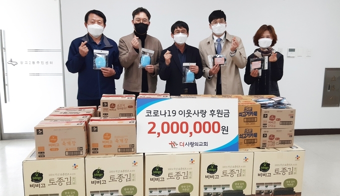 영통구 소재 더사랑의교회는 지난 26일, 코로나19로 생계에 어려움을 겪고 있는 취약계층을 위해 200만원 상당의 마스크와 밑반찬을 광교2동 행정복지센터에 전달했다.