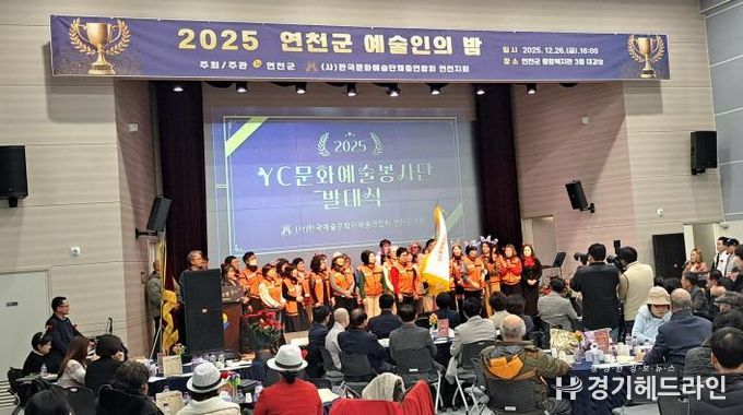[경기헤드라인=김윤종 기자] 지역 예술·문화 발전을 위해 한 해 동안 활동해 온 예술인들이 한자리에 모여 성과를 나누는 ‘2025 연천군 예술인의 밤’이 지난 26일 연천군종합복지관 대강당에서 열렸다.
