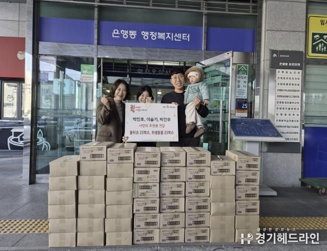 [경기헤드라인=문수철 기자] 시흥시 은행동 행정복지센터에 지난 12월 30일 한 부부가 세 살 자녀와 함께 방문해 관내 영유아와 청소년을 위한 물티슈 및 위생용품 50상자를 기탁했다.