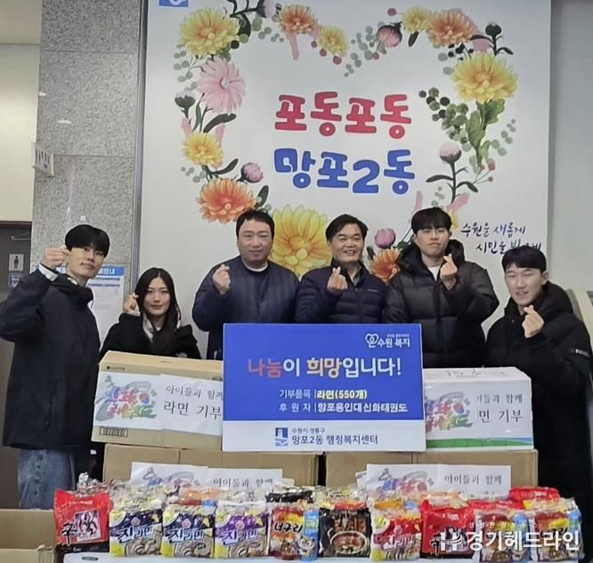 이번에 전달된 라면은 망포용인대신화태권도에 다니는 아이들이 자발적으로 모은 기부 물품으로, 연말을 맞아 이웃과 따뜻한 나눔을 나누기 위해 마련됐다.