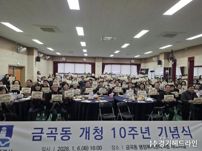 [경기헤드라인=문수철 기자] 2026년 개청 10주년을 맞은 권선구 금곡동은 지난 6일 지역구 의원과 주민 등 100여 명이 참석한 가운데 주민자치회 및 통장협의회와 함께 10주년 기념행사를 개최했다.