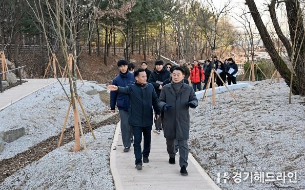 [경기헤드라인=문수철 기자] 의정부시는 2026년 병오년 새해를 맞아 1월 8일 녹지 인프라 확충을 위한 주요 사업 대상지를 현장 점검했다. 점검 대상지는 ▲장암동 실외정원 ▲용현산업단지 완충녹지 산책로 및 가로숲길 조성 사업지 ▲민락동 감성쉼터 등이다. 이번 점검은 도심 속 쉼터와 실외정원 확충, 안전한 보행환경 조성, 산림 명소 발굴 등 녹지 인프라 조성 사업의 추진 현황을 점검하고, 시민들이 일상에서 녹지 공간을 보다 쉽게 이용할 수 있도록 추진 중인 ‘도시숲 프로젝트’의 사업 방향과 현장 여건을 확인하기 위해 진행됐다.