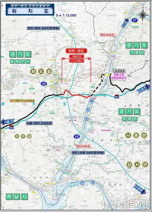 [경기헤드라인=문수철 기자] 국가지원지방도 86호선 와부~화도 4.3㎞ 구간이 5년 8개월 동안의 공사를 마치고 13일 전격 개통된다.