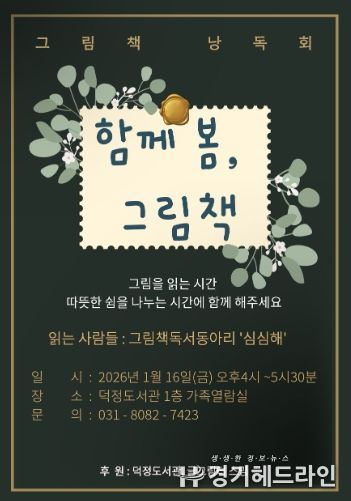 [경기헤드라인=김윤종 기자] 양주시 덕정도서관은 오는 1월 16일 16시부터 17시 30분까지, 도서관 1층 가족열람실에서 그림책 낭독회 '함께 봄, 그림책'을 운영한다.