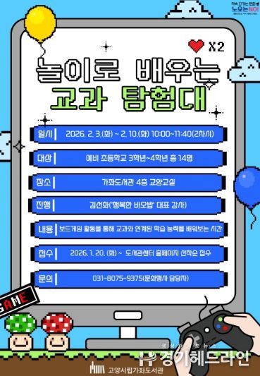 [경기헤드라인=김홍량 기자] 고양특례시 가좌도서관은 2월 3일부터 방학특강 프로그램 ‘놀이로 배우는 교과 탐험대’을 운영한다.