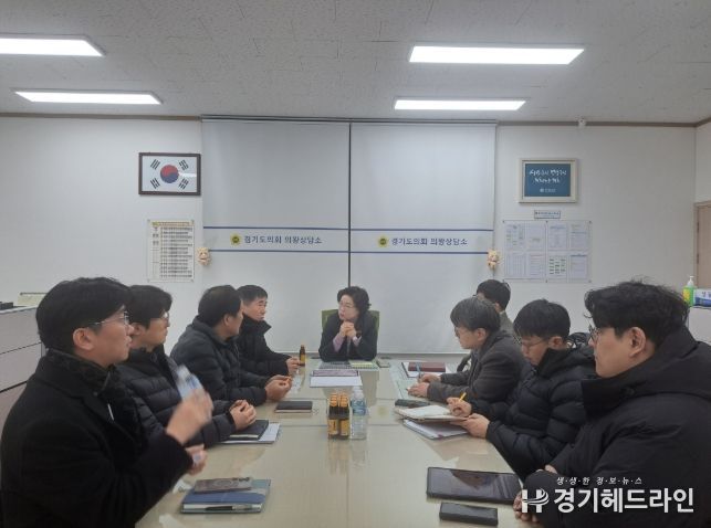 [경기헤드라인=문수철 기자] 경기도의회 도시환경위원회 김옥순 의원(더불어민주당, 비례)은 1월 16일 경기도의회 의왕상담소에서 의왕시청 도시정책과장과 관계 공무원 및 주민들과 함께 ‘재개발 사업 공사 진행 관련 문제점 대책 마련을 위한 정담회’를 개최했다.