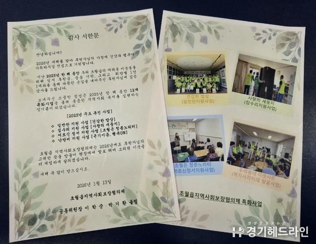 [경기헤드라인=정현수 기자] 광주시 초월읍 지역사회보장협의체는 2025년 한 해 동안 지역 내 어려운 이웃을 위해 나눔을 실천한 후원자 145명에게 감사의 마음을 담은 서한문을 발송했다고 19일 밝혔다.