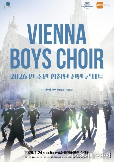 [경기헤드라인=문수철 기자] 군포문화예술회관은 2026년 새해를 여는 기획공연으로, 500년의 역사를 지닌 세계 최고의 소년합창단 “빈 소년 합창단(Wiener Sängerknaben)”의 내한공연 '2026 빈 소년 합창단 신년 콘서트'를 오는 1월 24일(토) 오후 5시, 수리홀에서 개최한다.