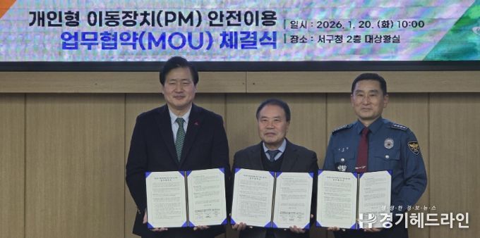 [경기헤드라인=문수철 기자] 인천서부교육지원청은 20일 서구청 대상황실에서 서구청, 서부경찰서와 ‘개인형 이동장치(PM) 안전 이용’ 업무협약을 체결했다.