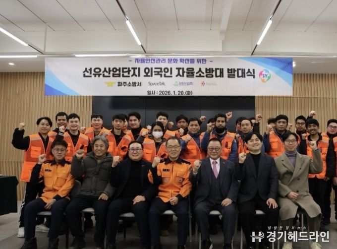 [경기헤드라인=김홍량 기자] 파주소방서는 1월 20일 오후 4시, 파주시 문산읍 선유산업단지 내 스페이스톡에서 외국인 근로자 자율소방대 발대식을 열었다. 이번 행사는 겨울철 화재위험이 높은 시기에 외국인 고용사업장의 자율안전관리 역량을 높이기 위한 취지로 마련됐다.