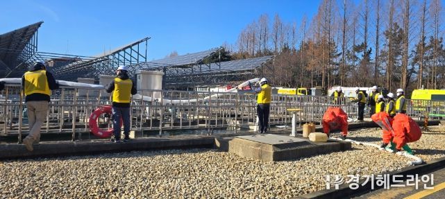 [경기헤드라인=문수철 기자] 인천광역시 상수도사업본부 공촌정수사업소는 정수시설을 대상으로 한 수질오염테러를 대비해 119특수대응단과 합동으로 실제 테러상황을 가정한 수질오염방제훈련을 실시했다고 21일 밝혔다.