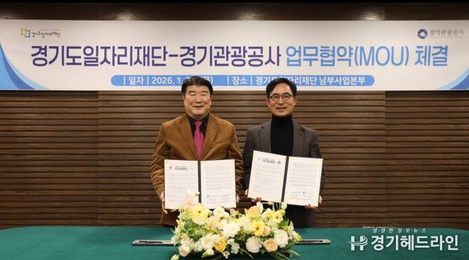 [경기헤드라인=문수철 기자] 경기도일자리재단과 경기관광공사는 22일 경기도일자리재단 남부사업본부에서 ‘경기북부 관광 활성화 및 유연근무 확산을 위한 업무협약(MOU)’을 체결했다.