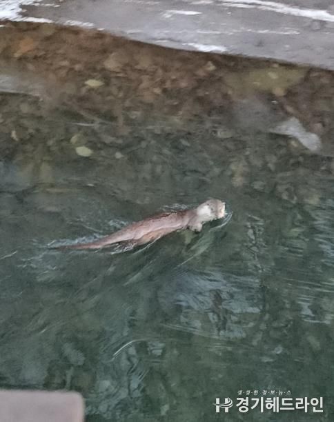 [경기헤드라인=문수철 기자] 군포시의 대표 휴식처인 반월호수에 멸종위기 야생생물 1급이자 천연기념물인 ‘수달’이 모습을 드러냈다.