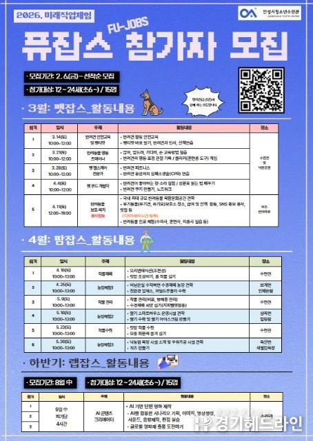 [경기헤드라인=문수철 기자] 안성시청소년수련관은 오는 2월 6일부터 청소년들의 진로 탐색과 미래 직업에 대한 이해를 돕기 위해 미래직업 체험 프로그램 “퓨잡스” 참가자를 선착순으로 모집한다.