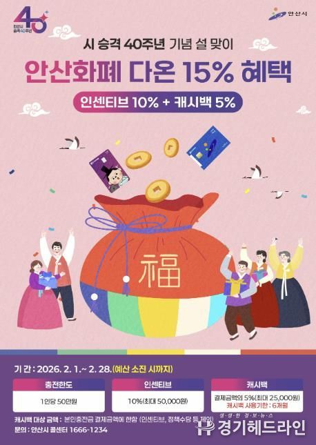 [경기헤드라인=문수철 기자] 안산시는 시 승격 40주년을 기념하고 시민들의 설 명절 부담을 덜어주고자 지역화폐 ‘다온’의 소비 혜택을 강화한다고 30일 밝혔다.