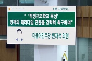 [경기헤드라인=문수철 기자] 경기도의회 교육행정위원회 소속 변재석 의원(더불어민주당, 고양1)은 4일 열린 경기도의회 본회의 5분 자유발언을 통해 경기도교육청의 ‘적정규모학교 육성’ 정책이 통폐합과 폐교 중심으로 작동하고 있다며, 정책의 패러다임을 ‘정리’가 아닌 ‘지원’ 중심으로 전환할 것을 강력히 촉구했다.