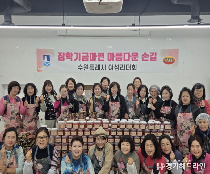 김미애 수원시여성리더회 총회장과 이지영 수원시여성단체협의회 명예회장 등 회원 20여 명이 참여해 명란젓과 낙지젓 등 4종의 젓갈을 소포장해 판매했다. 수익금은 장학금으로 기부할 예정이다.