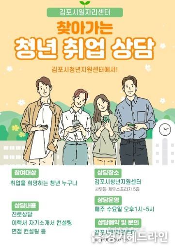 [경기헤드라인=문수철 기자] 김포시가 김포시청년지원센터에 김포시일자리센터 직업상담사를 파견해 청년들의 취업 고민 해소에 더욱 적극적으로 나선다.