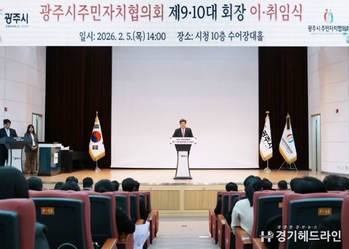 [경기헤드라인=정현수 기자] 광주시는 5일 시청 수어장대홀에서 ‘제9·10대 광주시 주민자치협의회장 이·취임식’을 개최했다.