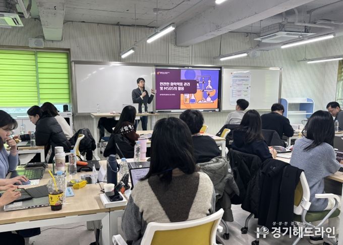 5일 연수의 주요 내용은 ▲과학실험실 안전관리의 실제 ▲안전한 화학약품 관리 및 MSDS 활용 ▲사례로 알아보는 과학실험실 안전 등 학교 현장에서 바로 적용 가능한 실습·사례 중심 프로그램이 운영됐다.